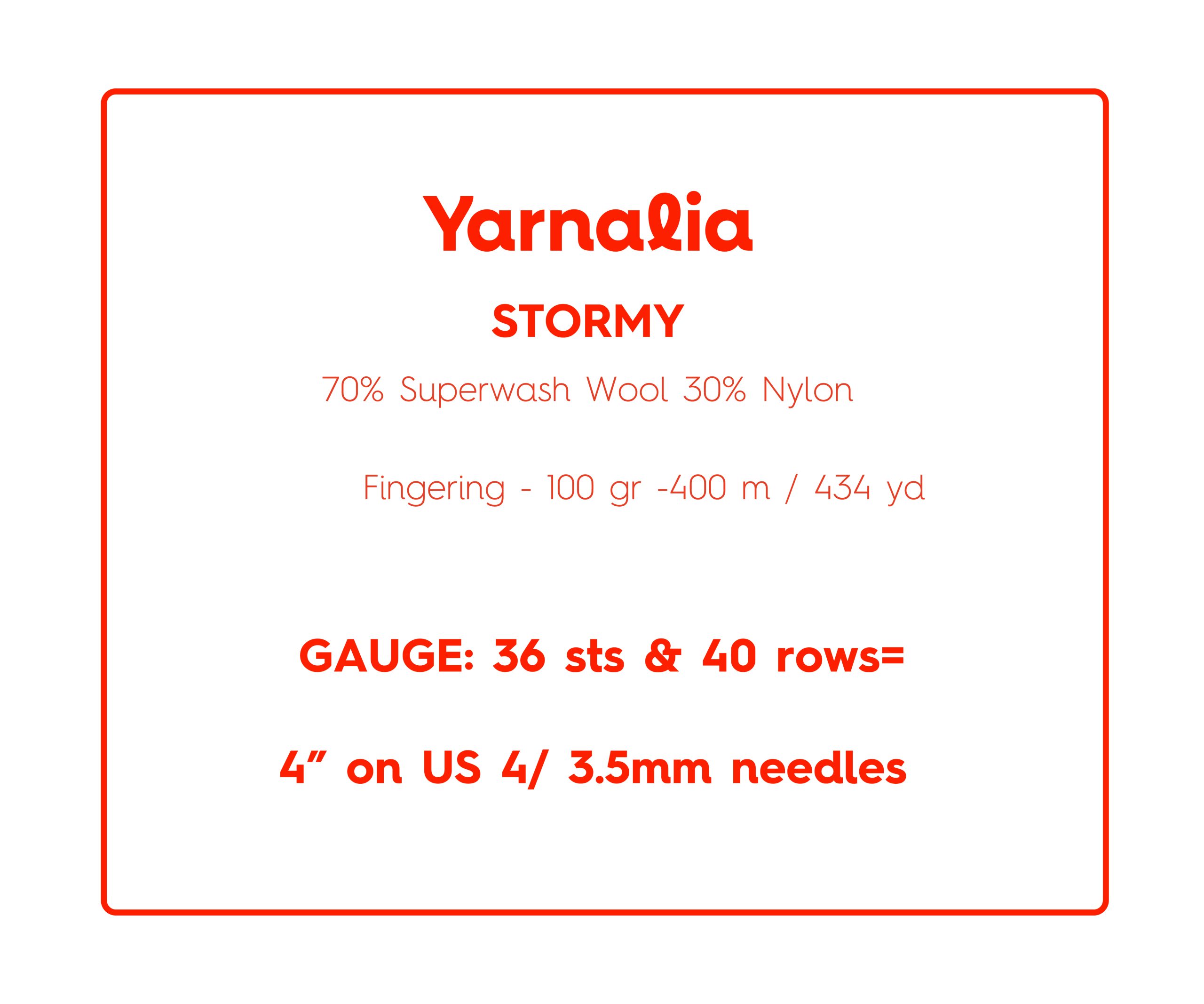 Let your yarn do the work with our self-patterning base, Stormy. This fingering weight blend is perfect for sweaters, accessories, and socks as the touch of nylon adds a little extra strength. Stormy works up into a beautiful space-dyed effect in a variety of colors. Keep your knitting simple and enjoy impressive results with this fun choice! Stormy comes in a skein, to best highlight its beauty and patterning. We recommend winding Stormy into a ball or cake before using it.